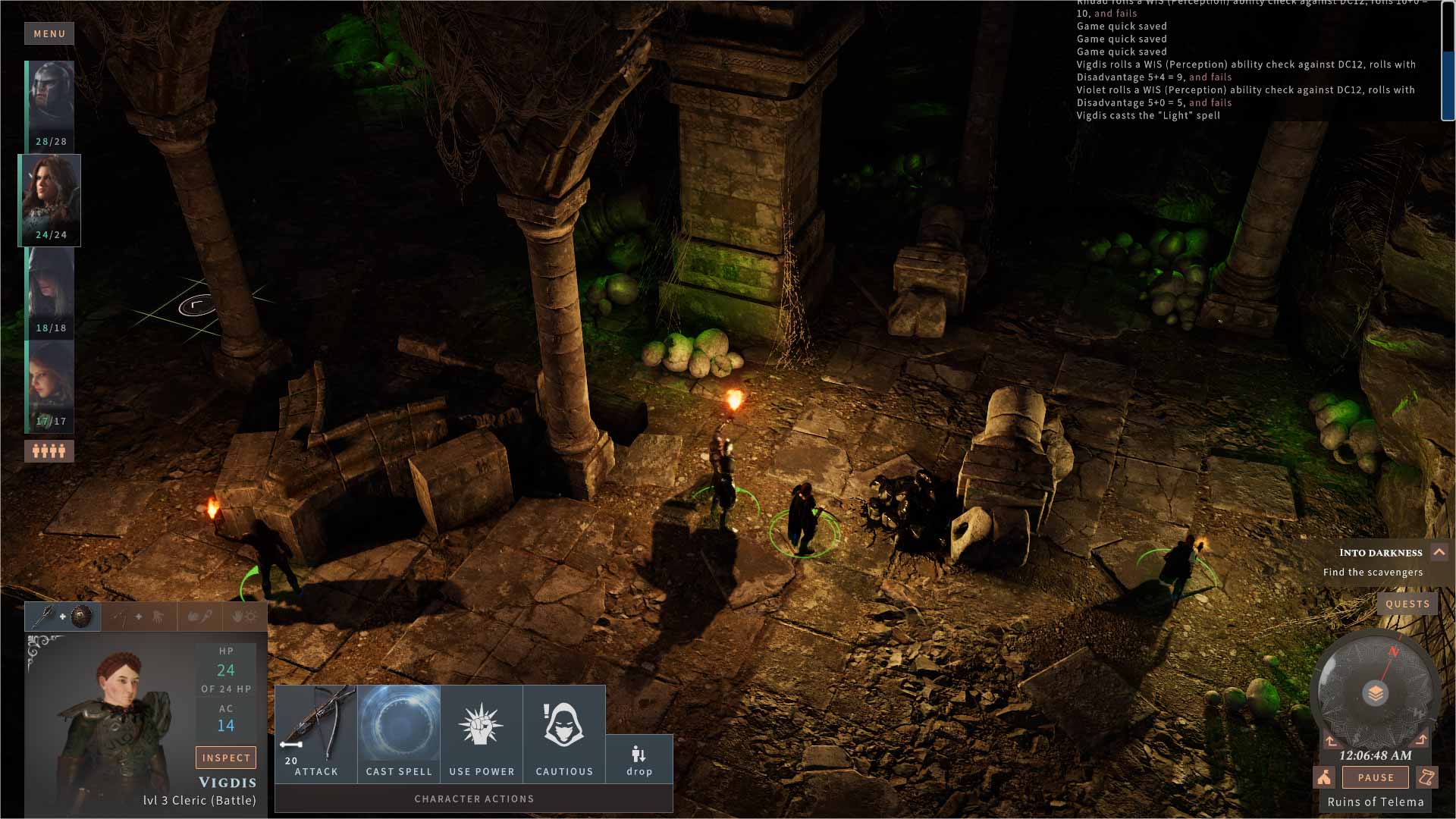 Como creo que Solasta hace bien en invitarnos a buscar situaciones ventajosas, nunca sentí que la suerte me jugara muy malas pasadas, como si lo sentí en Baldur’s Gate 3. La mayoría de escenarios de combate, además, tienen peligros de ambiente que podemos aprovechar, como estalactitas o candelabros que podemos hacer caer sobre nuestros enemigos, o vacíos a los que podemos empujarlos.